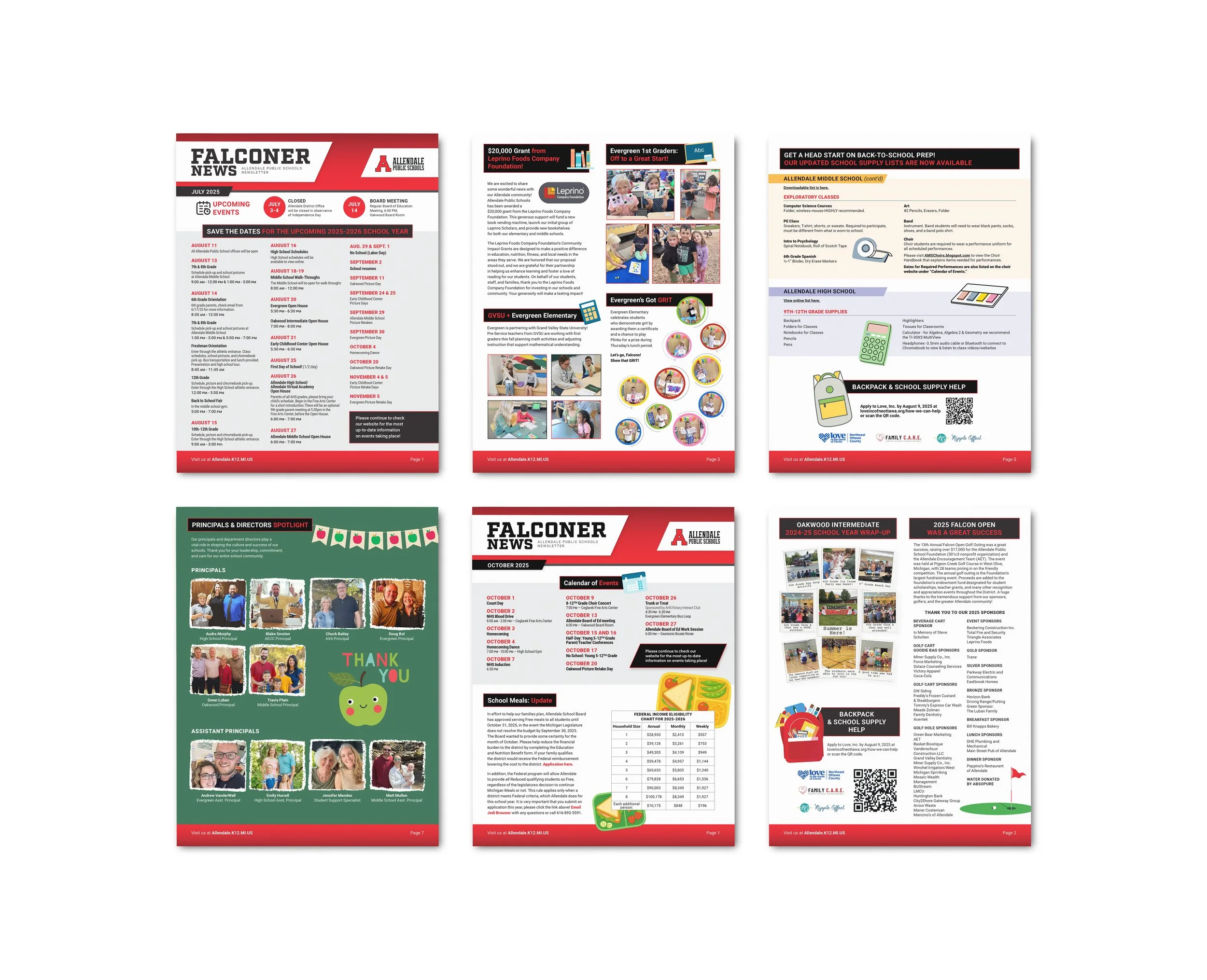 The district's brand identity was applied inconsistently across schools and departments, with no clear guidelines for logos, colors, typography, or graphic elements. The Falconer, the APS district monthly newsletter, a key touchpoint for families and the community, presented an opportunity to establish a stronger and more recognizable presence.